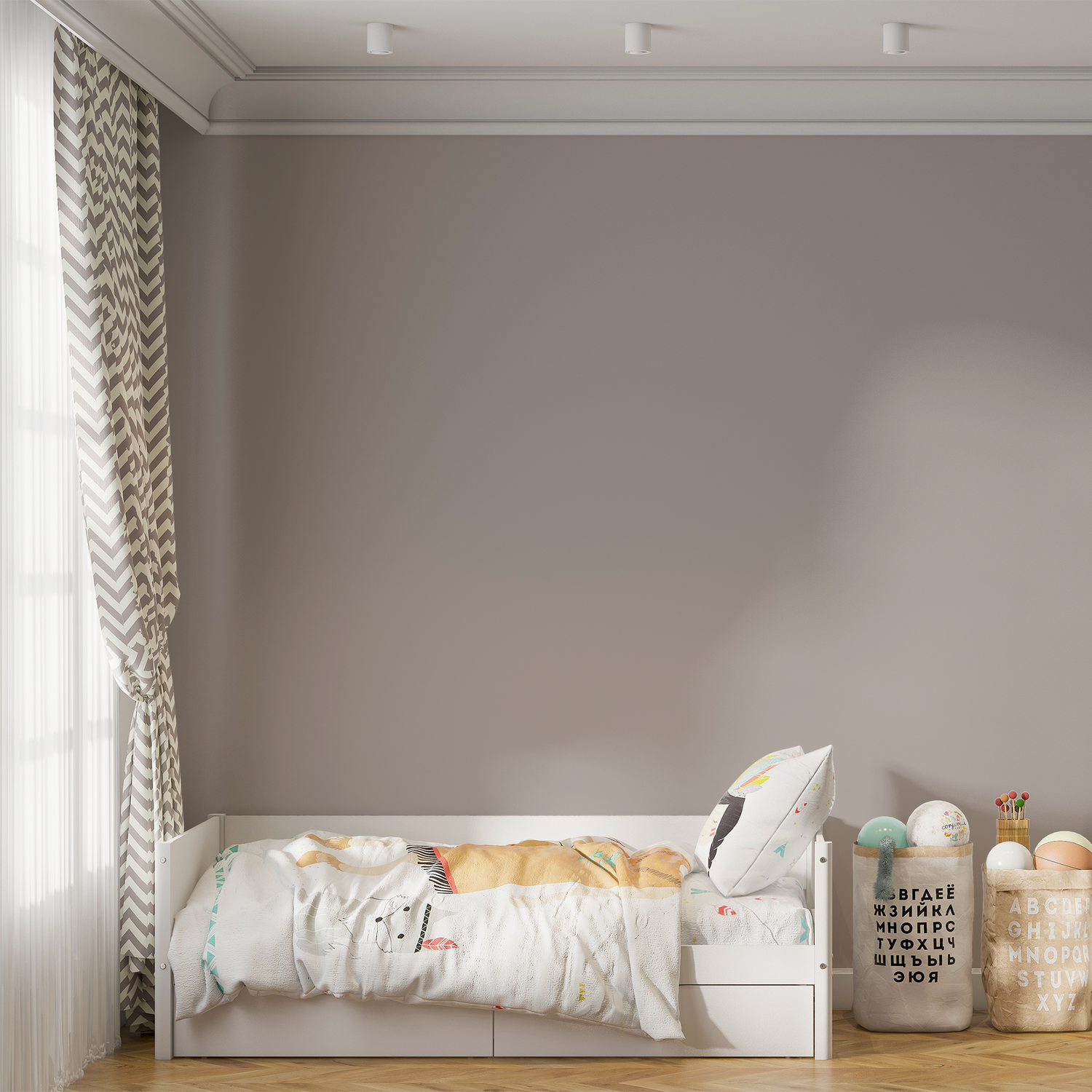 Dust Thread este o nuanta subtila de gri-bej cu textura vizuala inspirata de firele naturale de in si bumbac usor prafuit. Este o alegere versatila pentru interioare care doresc sa imbine caldura cu neutralitatea.